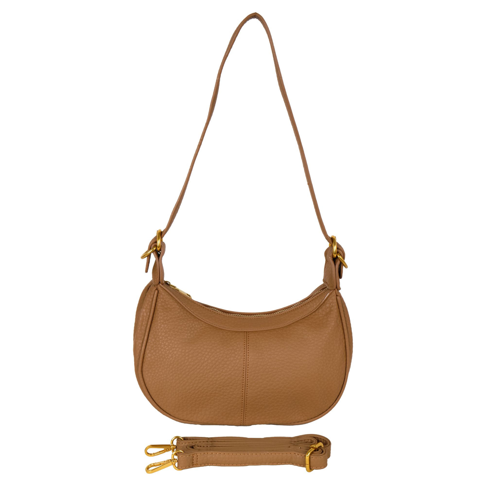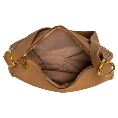 Стильная сумка хобо фирмы POLA выполнена из экокожи, одна из самых трендовых и востребованных сумочек. Сумка по размеру маленькая, но компактная, подойдёт как для выхода в театр, ресторан, так и для прогулки в будние дни в качестве повседневной сумки в виде полумесяца. Основное отделение закрывается на молнию. Внутри есть один карман на молнии и один открытый кармашек. У данной модели два варианта переноски, съемная ручка, высота 37см и съемный, регулируемый ремешок из экокожи, высота 125 см. Цвет фурнитуры-золото.