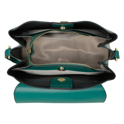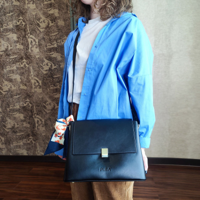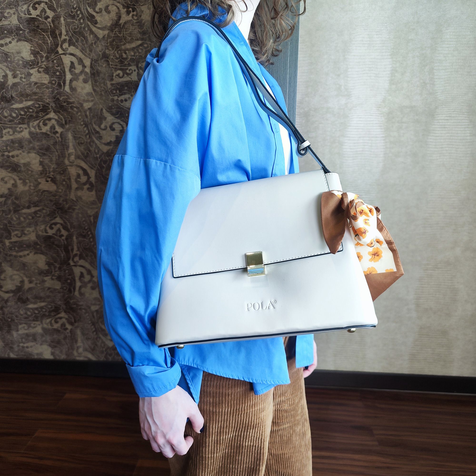 Стильная женская сумка фирмы Pola выполнена из экокожи и украшена платком. Основное отделение закрывается на клапан с помощью металлического замка-защелки и металлическую молнию. Внутри сумки есть маленький карман на молнии и один открытый. Сумка прекрасно подойдёт для повседневной носки. У сумки есть регулируемая ручка для переноски, высота которой составляет 45 см их можно украсить платком. Есть тонкий регулируемый ремешок длина которого- 121 см. Цвет фурнитуры-золото.